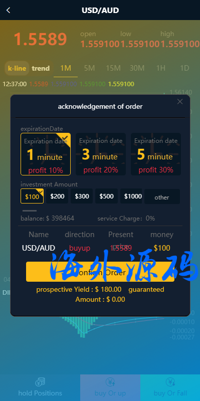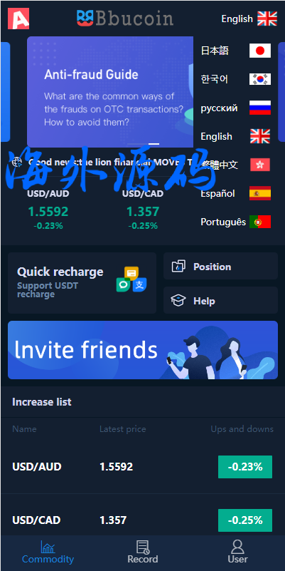 一款多语言的微交易系统,产品都是虚拟币类型的,K线正常
