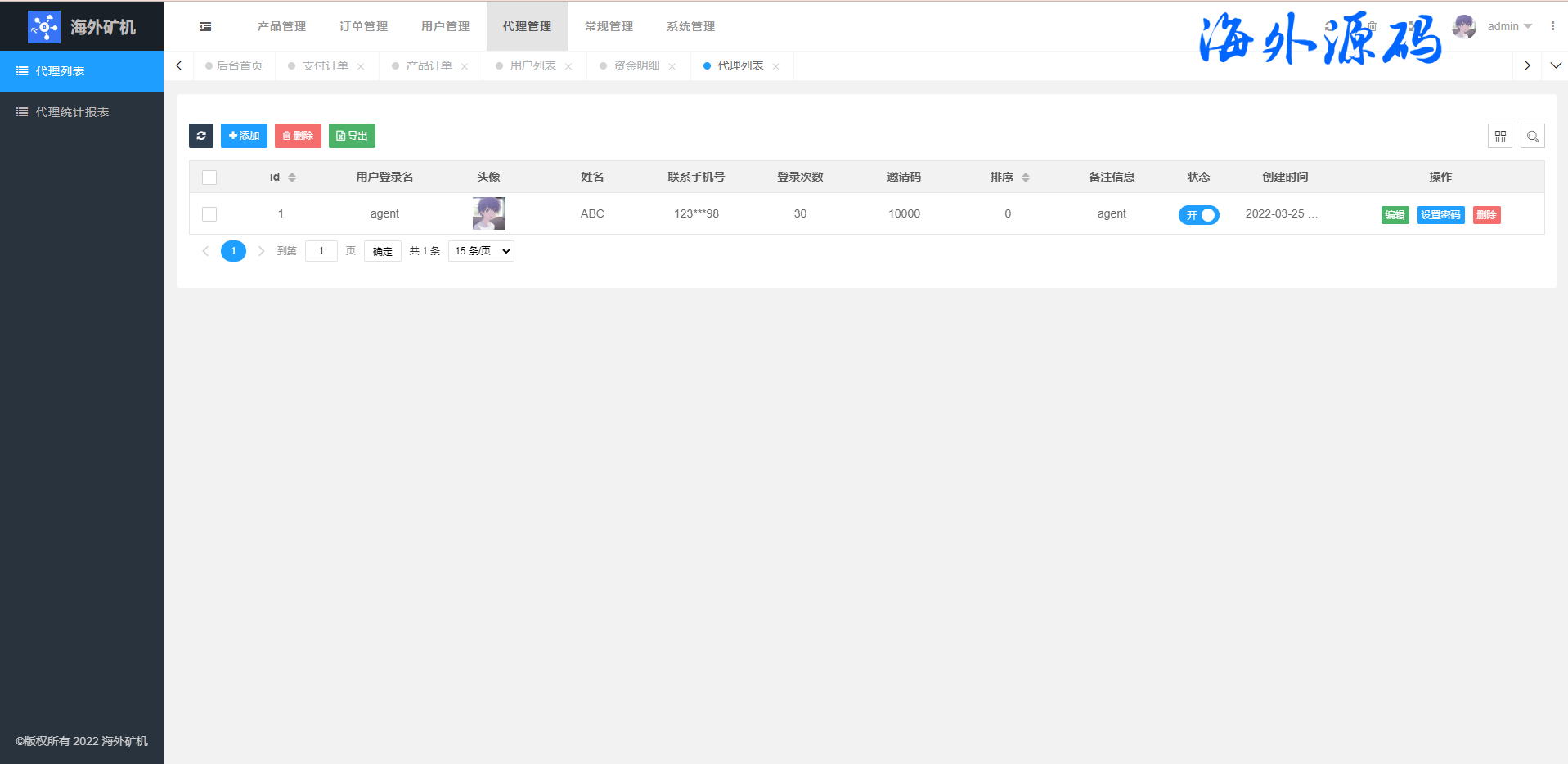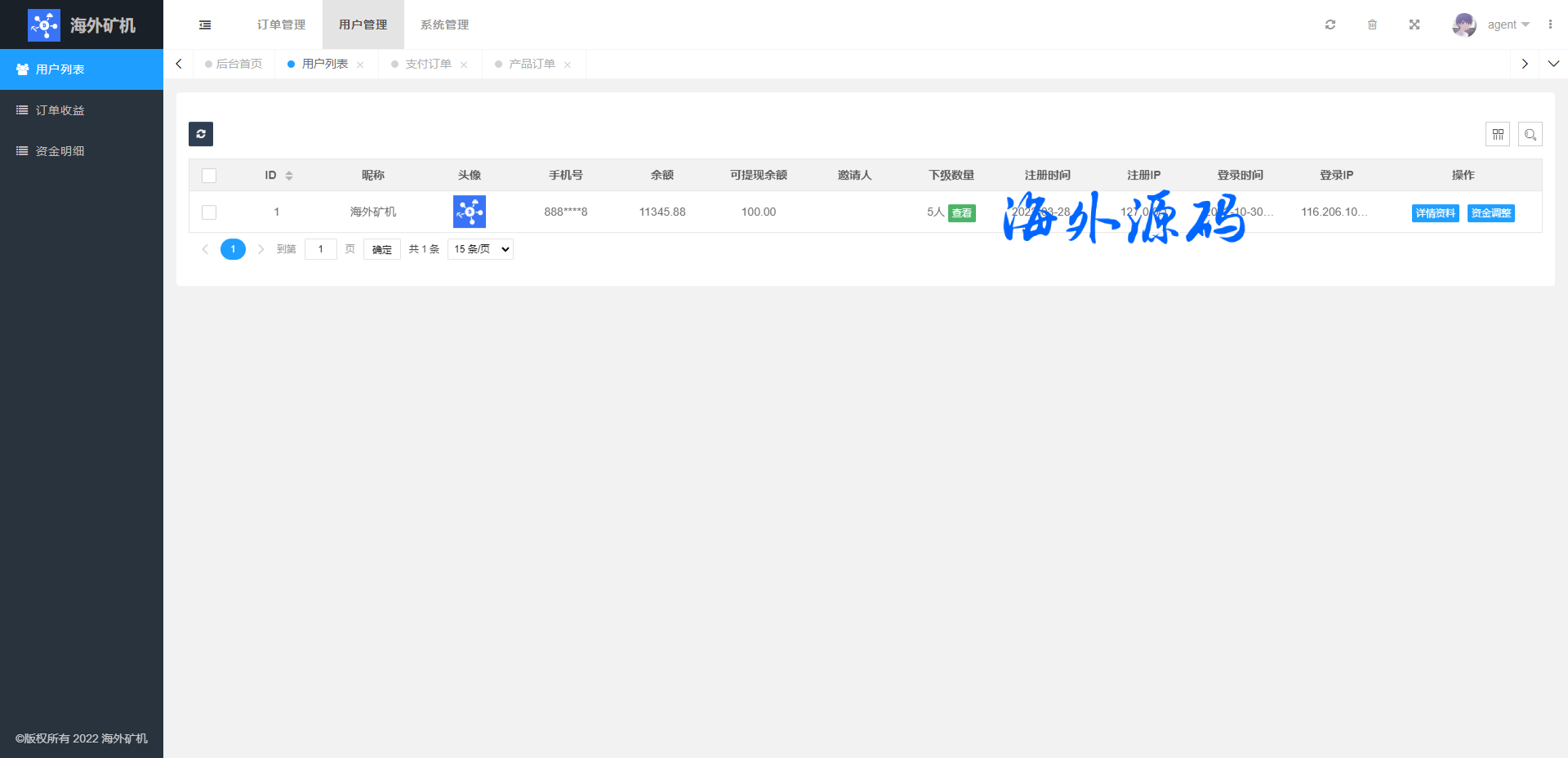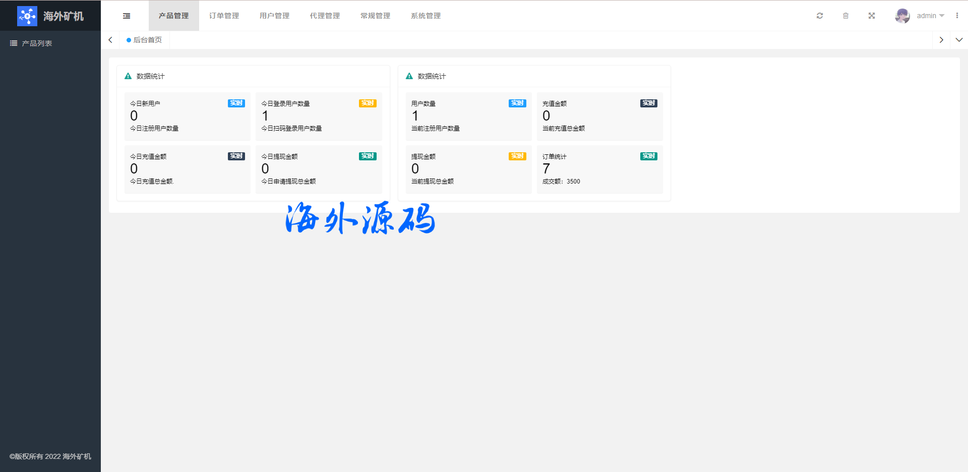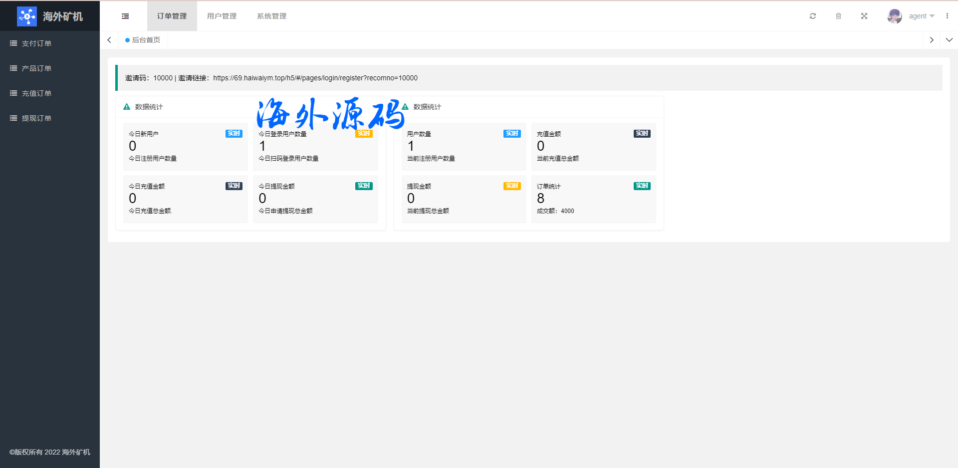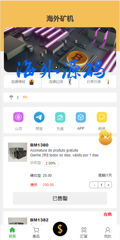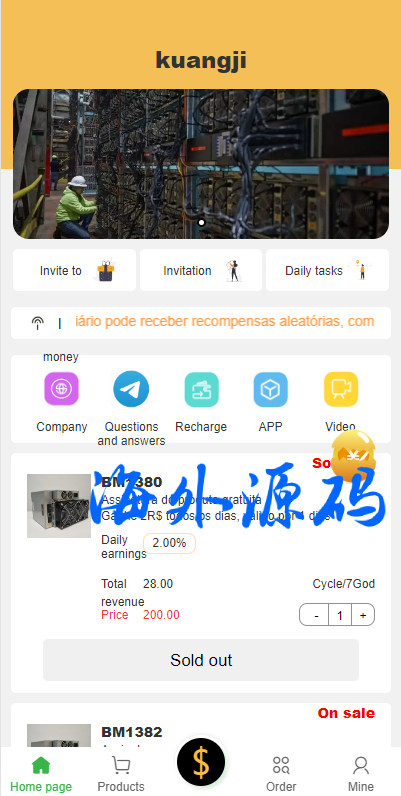 前端uinapp矿机系统/多语言海外矿机投资源码/单独代理后台
