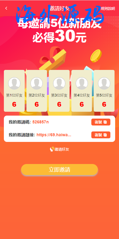 系统功能符合正常运营需求,功能有邀请裂变、签到等一些小功能