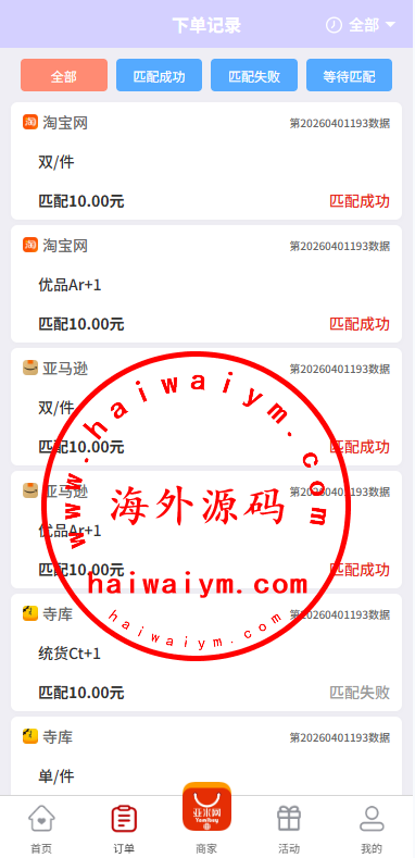 伪商城刷单系统/订单自动匹配系统/带预设/代理后台