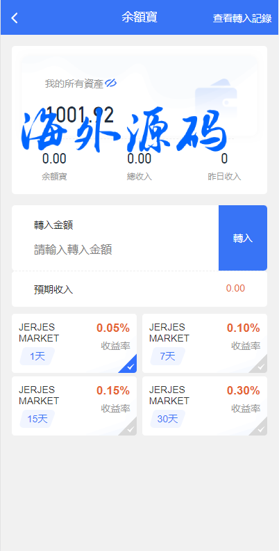 系统前端支持多语言、支持余利宝、代理后台等功能