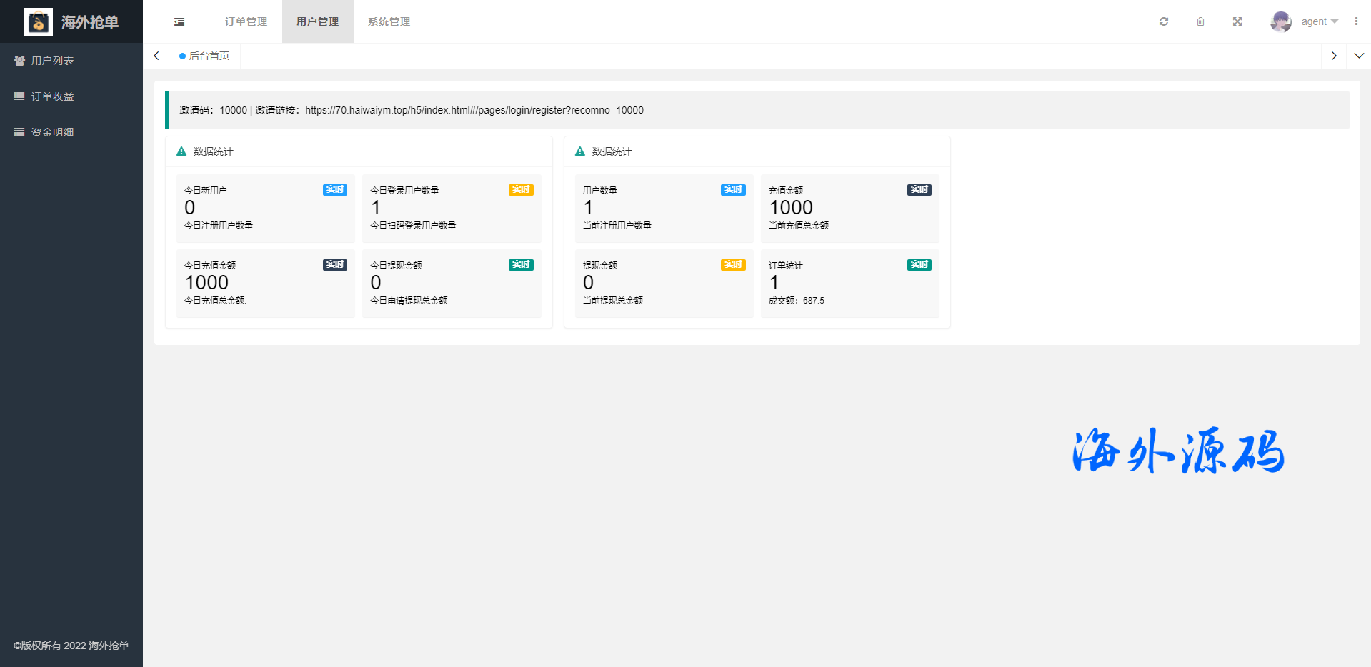 uinapp版海外多语言抢单刷单系统/余利宝/代理后台/刷单源码