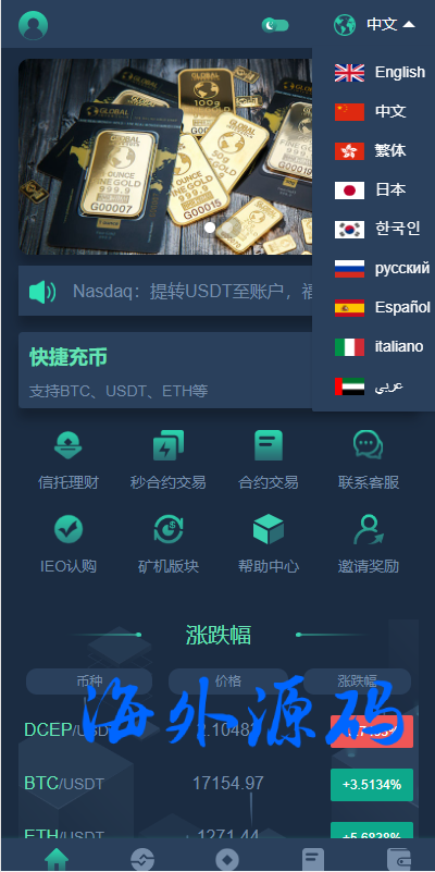 新版多语言交易所系统/合约期权交易所/理财认购矿机/空气币系统