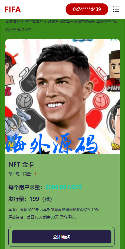 一款以世界杯球星开发的nft藏品购买系统,系统是dapp源码可直接链接钱包购买