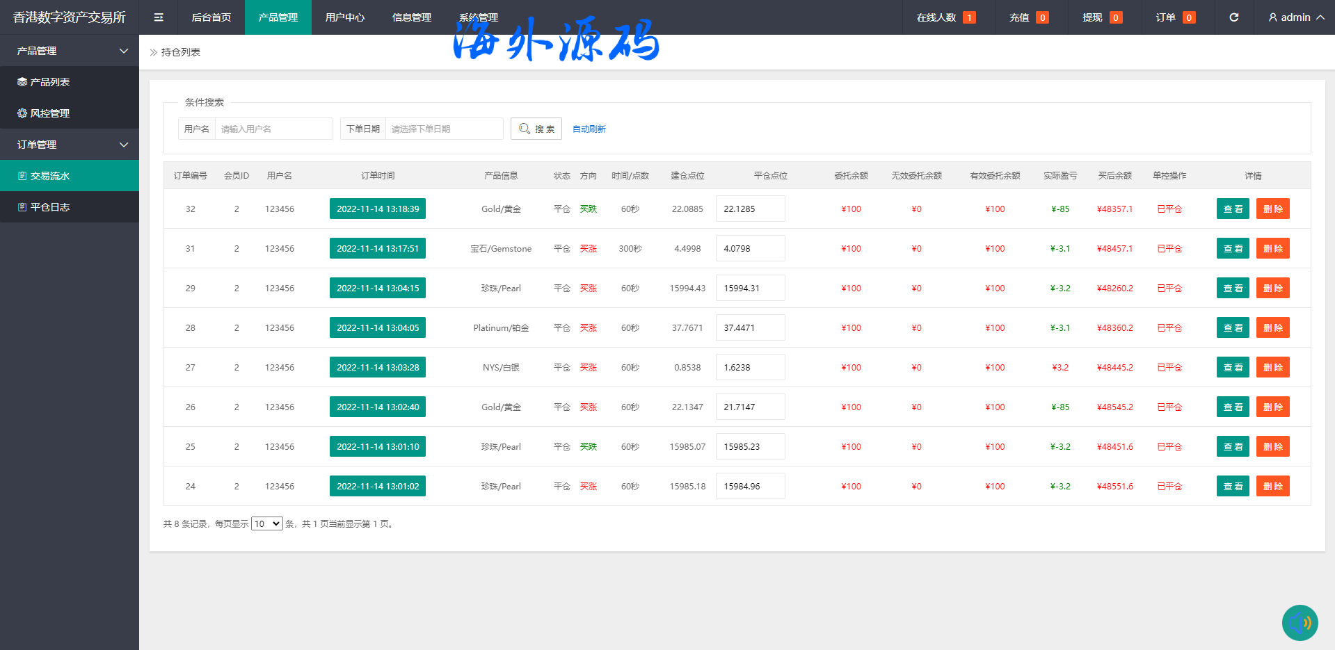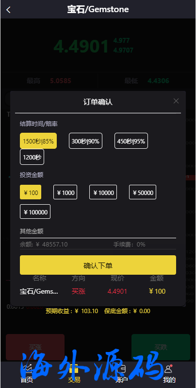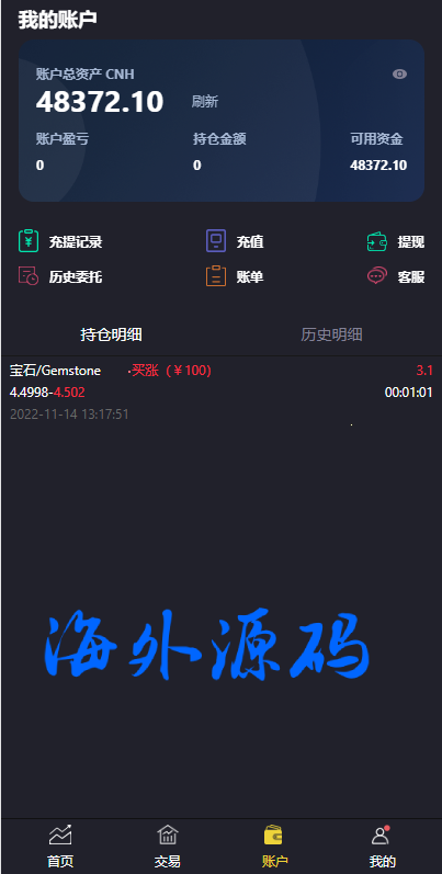 一套二开前端UI得贵金属微交易系统,前端产品后台可任意更换